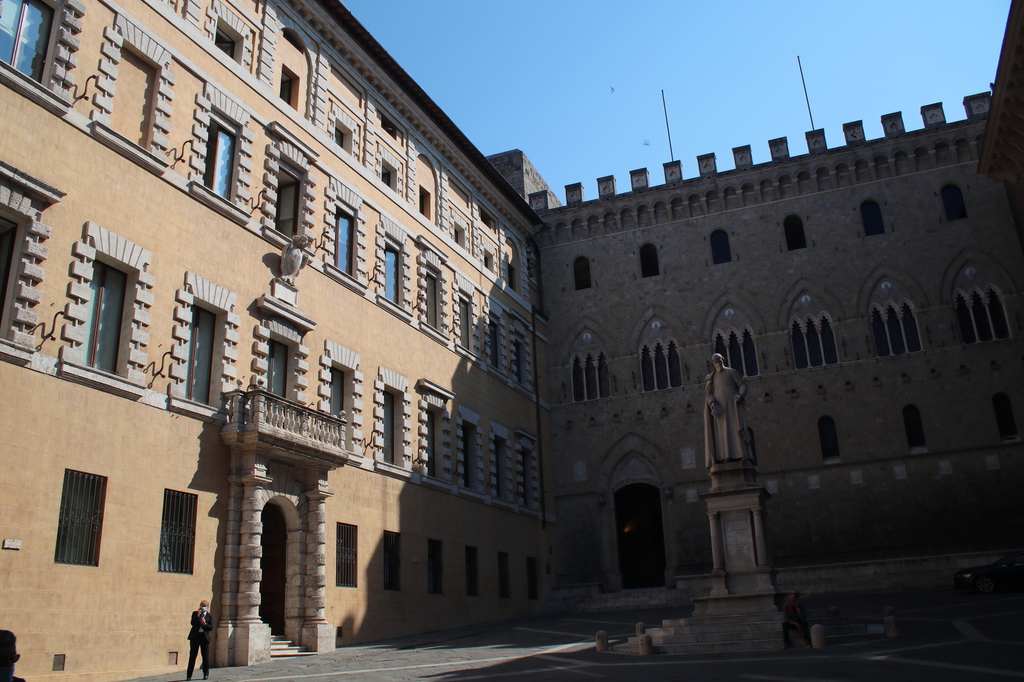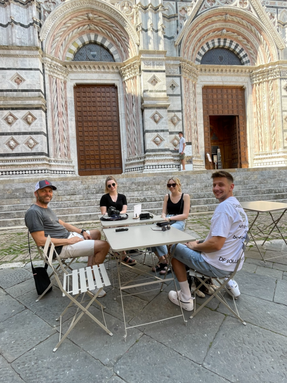 Nachdem wir eine ruhige Nacht auf dem Stellplatz in Santa Lucia verbracht haben, wird in Ruhe gefrühstückt, ehe es weiter geht. Überrascht sind wir, als wir die Stellplatzgebühr am Automaten begleichen wollen, denn wir müssen lediglich 7 € berappen! Das war dann aber auch das einzig positive an diesem Platz. Schnell noch ver- und entsorgt am nebenan liegenden Campingplatz und schon sind wir auf der Straße nach Siena. Kurz vor Siena verlieren wir Julian und Lena aus den Augen. Seltsamerweise finden beide den vorher ins Auge gefassten Parkplatz nicht. Irgendwie bekommen wir es dann aber doch hin und nach 15 Minuten sind auch die beiden wieder bei uns.