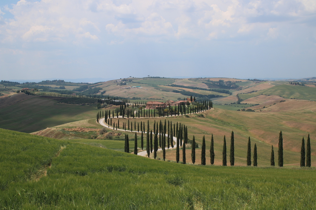 Nächstes Ziel für uns waren die Zypressenalleen der Toskana, die wohl nahe Siena beginnen. Wir fahren also aus Siena raus und bereits nach wenigen Kilometern werden wir von der Schönheit der Toskana fast erschlagen. Wie aus dem Nichts erscheint die bekannte hügelige Landschaft mit ihren Alleen! Anfangs halten wir alle paar Meter an, um die notwendigen Fotos zu schießen und um nichts zu verpassen. Irgendwann genießen wir aber nur noch die Fahrt auf der SP60, die überwiegend auf 30 km/h begrenzt ist. Am wohl bekanntesten Motiv beim Agriturismo Baccoleno werden noch mal die obligatorischen Instagram-Fotos geschossen und kurz die Drohne in die Luft gejagt, ehe wir gemütlich der Straße folgen und nur noch die Aussichten genießen. Alleine auf dieser Straße könnte man mehrere Tage Urlaub verbringen, wenn man alle Örtchen mit ihren kleinen Castellos besichtigen würde.